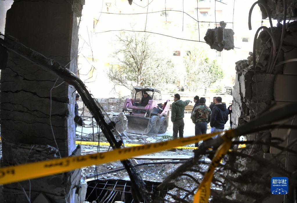 這是2月19日在敘利亞大馬士革拍攝的在導彈襲擊中受損的建筑。