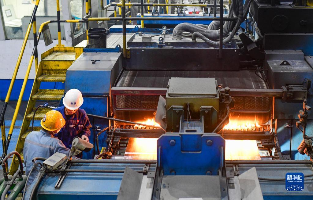 2月19日,在霍林郭勒市一家鋁業(yè)公司,工人在鋁箔生產(chǎn)線(xiàn)上巡查。