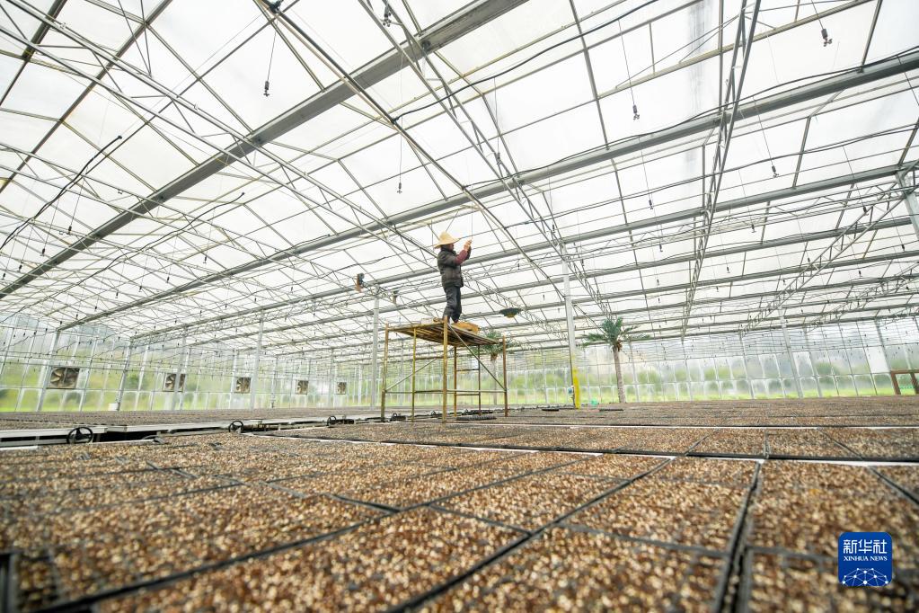 2月18日,村民在貴州省遵義市辣椒智慧產(chǎn)業(yè)園智能大棚安裝自動(dòng)噴水裝置。