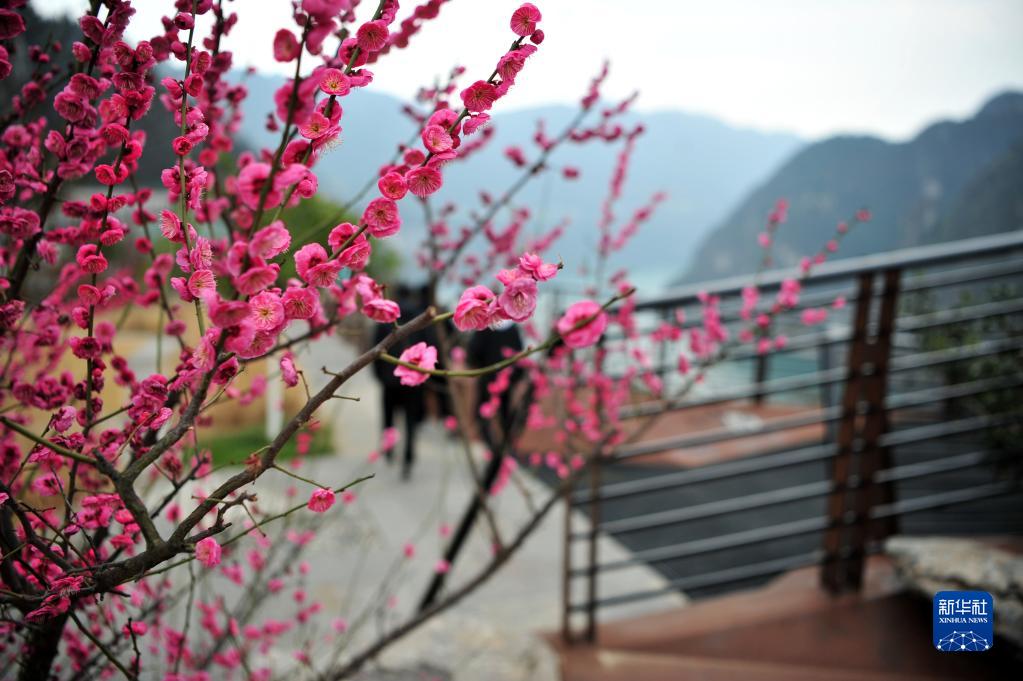 游客在湖北省宜昌市夷陵區樂(lè )天溪鎮王家坪觀(guān)景平臺游覽峽江風(fēng)景(2月14日攝)。
