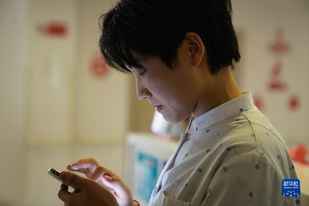 2月14日,在南通常青樂(lè )齡護理院,李楠楠和市民微信溝通,聽(tīng)取建議。