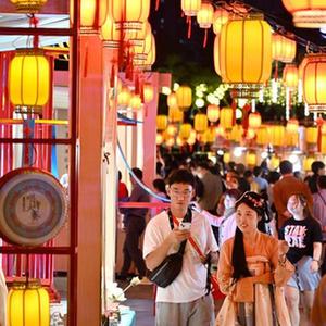 游客在??谌赵聫V場(chǎng)逛古風(fēng)市集(2月19日攝)。