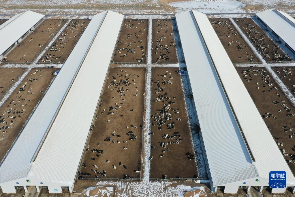 這是2月18日在武威市涼州區一家企業(yè)牧場(chǎng)拍攝的奶牛棚圈(無(wú)人機照片)。