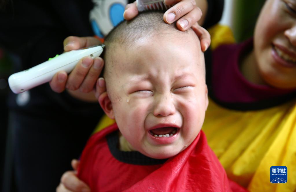 當日是農歷二月初二,許多家長(cháng)帶著(zhù)孩子“剃龍頭”,祈求孩子在新的一年健康成長(cháng)。