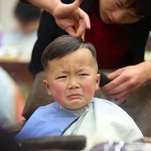 2月21日,理發(fā)師在山東省滕州市一家母嬰生活館為小朋友理發(fā)。