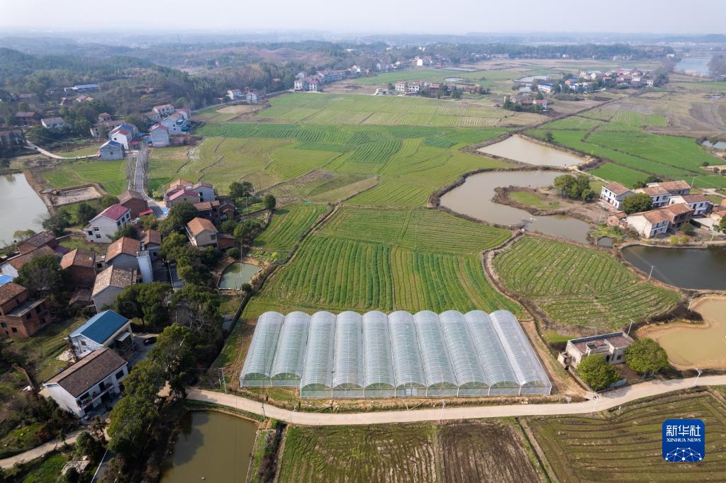 這是2月21日在醴陵市沈潭鎮江田村拍攝的一處新修建的育秧大棚(無(wú)人機照片)。