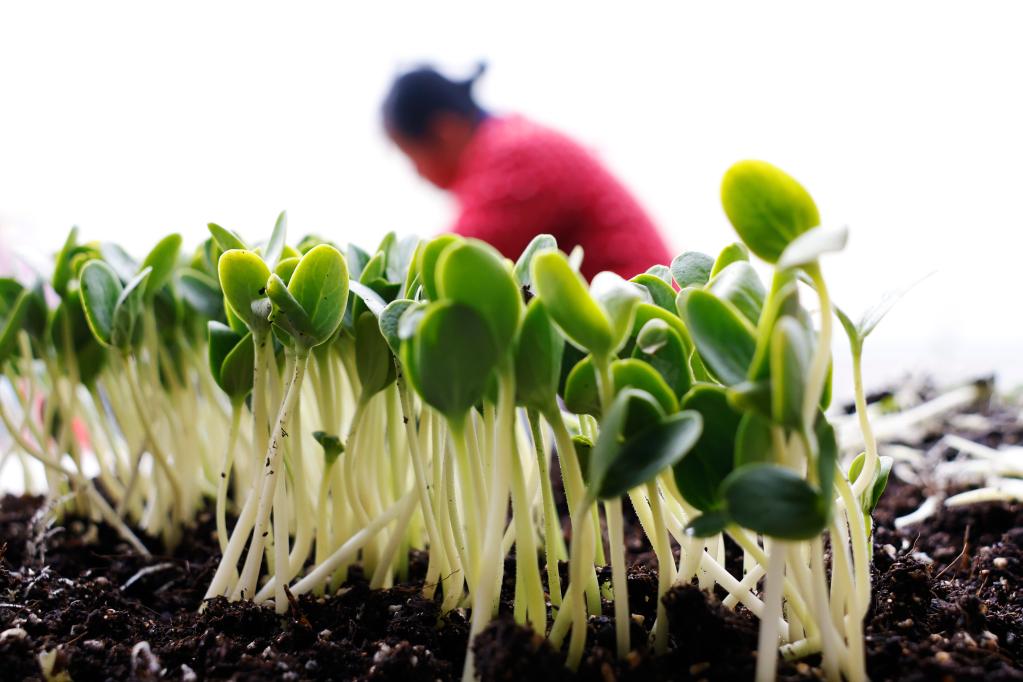 2月22日,在江蘇省泗洪縣魏營(yíng)鎮西瓜種苗培育基地,瓜農在溫室內嫁接培育西瓜苗。