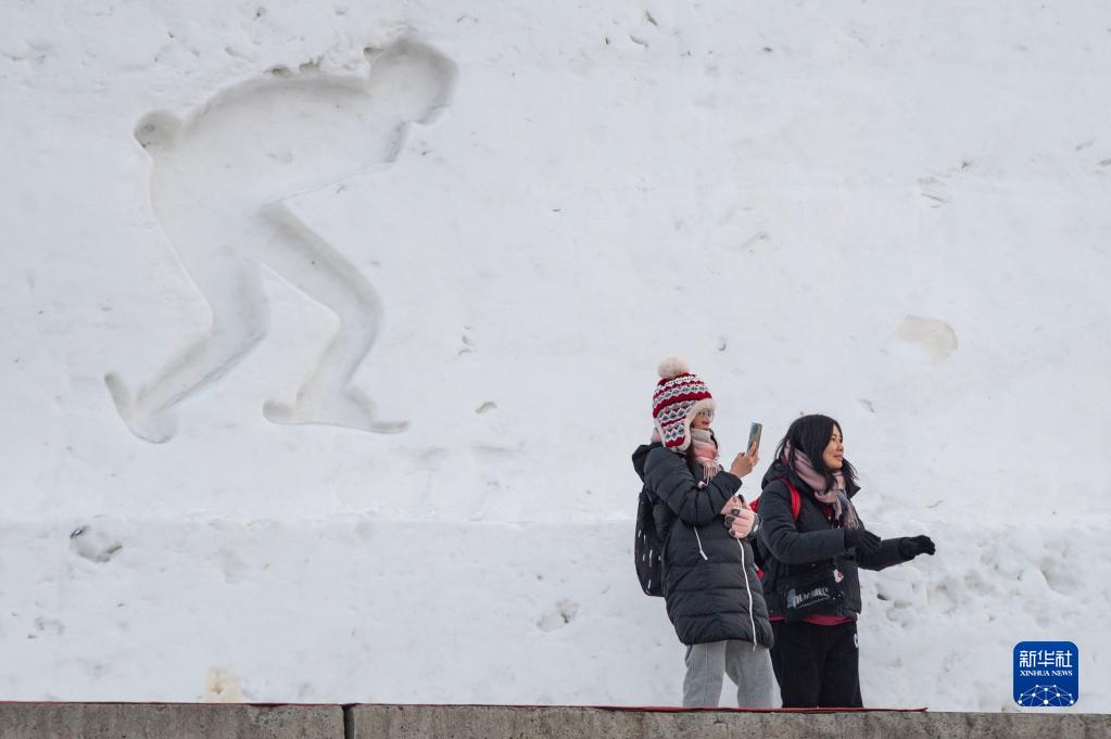 2月22日,游客在哈爾濱松花江冰雪嘉年華園區內游玩。