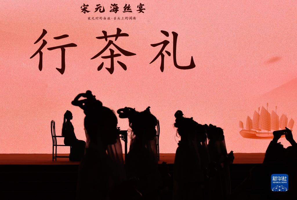 當日,福建泉州石獅市舉辦“閩菜地標美食城市”授牌暨“宋元海絲宴”推介儀式?!八卧=z宴”以南宋福建泉州石獅籍美食家林洪著(zhù)作《山家清供》為還原藍本,兼收閩南名菜,集山珍、海味于一席,將菜品、宴席與宋元器皿、場(chǎng)景、樂(lè )曲、詩(shī)詞等融合,展現宋元時(shí)期世界海洋商貿中心獨特的美食文化。新華社記者 魏培全 攝