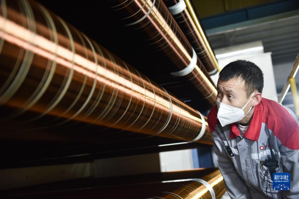 2月22日,在中復神鷹碳纖維西寧有限公司,工作人員在檢查碳纖維生產(chǎn)線(xiàn)運行情況。