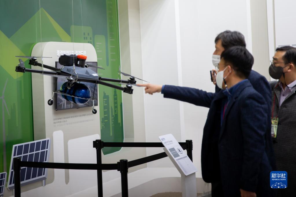 2月23日,參觀(guān)者在韓國釜山舉辦的2023韓國無(wú)人機展上觀(guān)看液化氫燃料無(wú)人機。