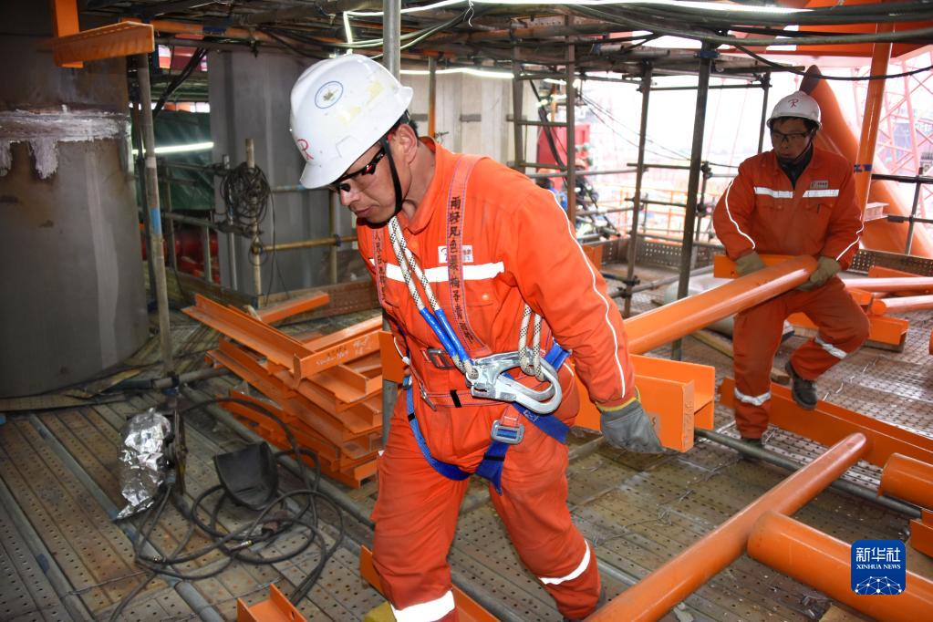 2月22日,工人在渤中19-6凝析氣田一期CEPA(中心處理平臺)組塊建造現場(chǎng)進(jìn)行施工作業(yè)。