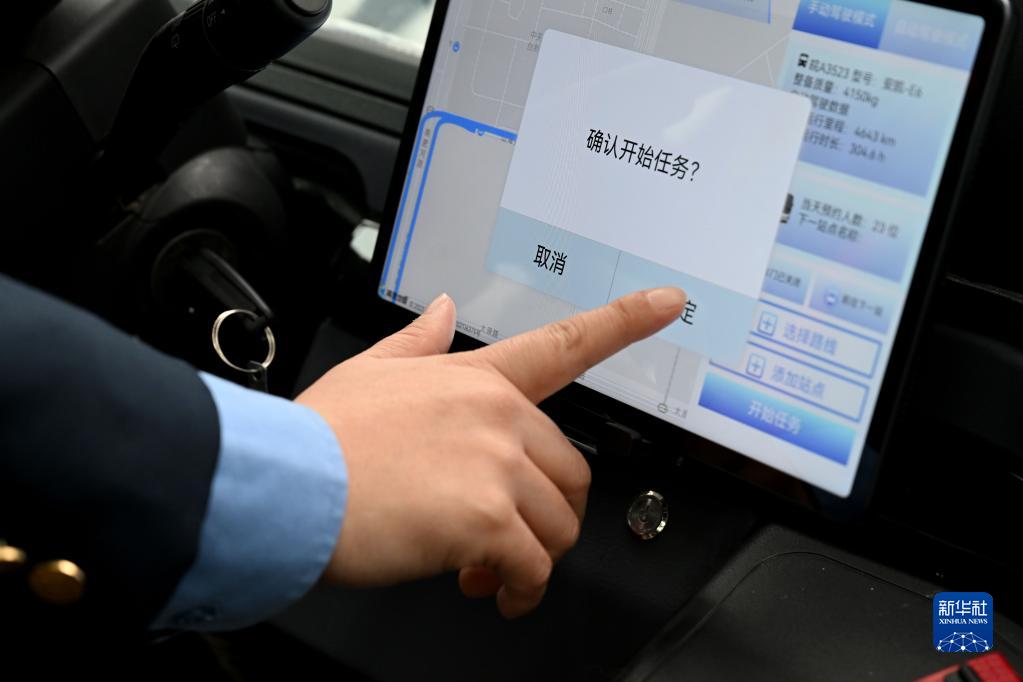 2月22日,自動(dòng)駕駛公交車(chē)的隨車(chē)安全員將車(chē)輛設置為自動(dòng)駕駛模式。