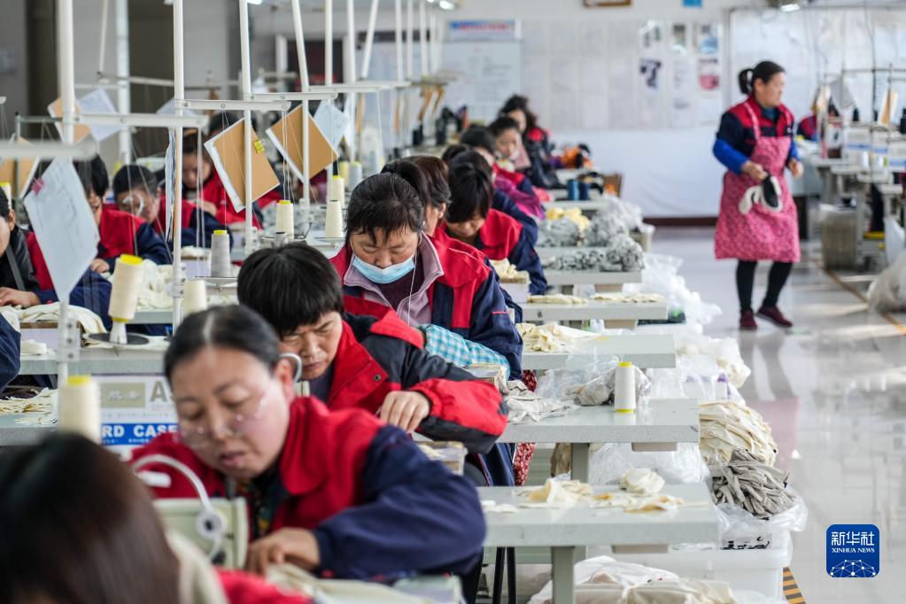 2月23日,在嘉祥縣的一家手套生產(chǎn)企業(yè),員工在車(chē)間內加工生產(chǎn)手套。