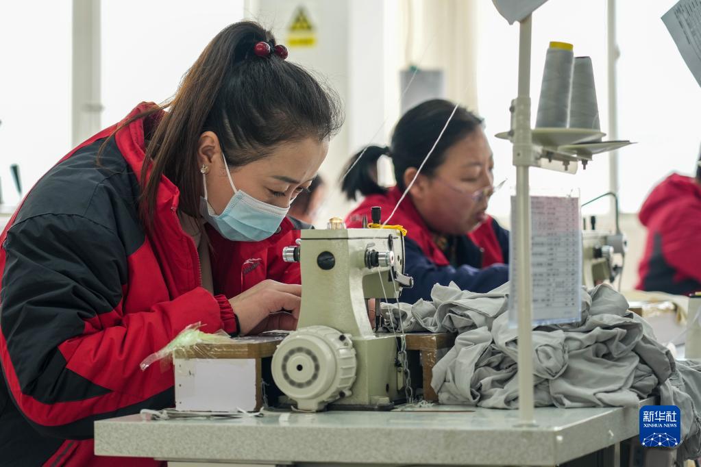 2月23日,在嘉祥縣的一家手套生產(chǎn)企業(yè),員工在車(chē)間內加工生產(chǎn)手套。