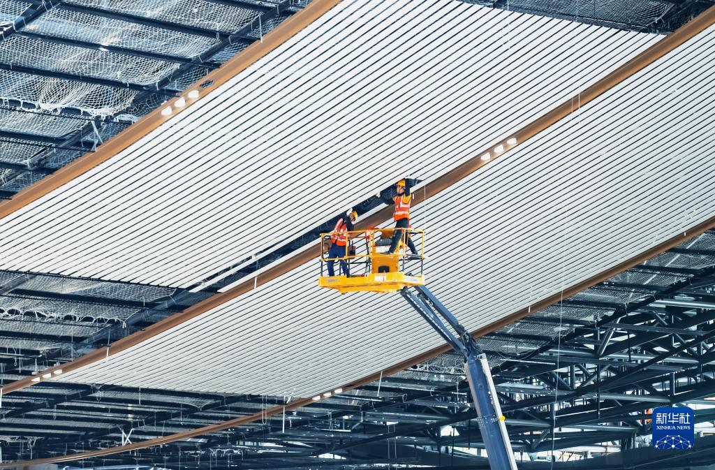 2月23日,中鐵建設集團有限公司施工人員在新建福廈鐵路廈門(mén)北站候車(chē)大廳開(kāi)展吊頂安裝作業(yè)。