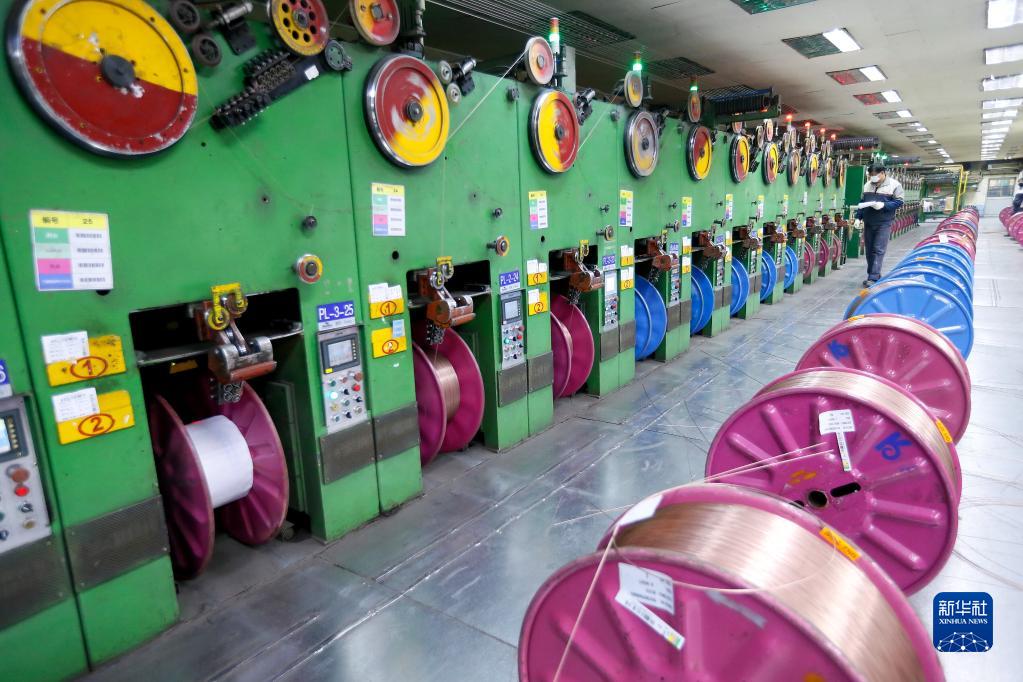 2月23日,在位于青島市即墨區科技創(chuàng )新園的青島高麗鋼線(xiàn)有限公司,工人在胎圈鋼絲包裝車(chē)間生產(chǎn)鋼線(xiàn)產(chǎn)品。