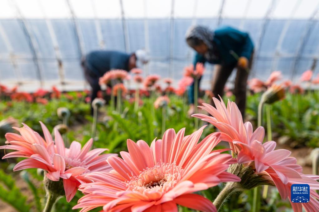 2月23日,農民在河北省唐山市豐南區大新莊鎮柳林村花卉種植基地采收鮮花。