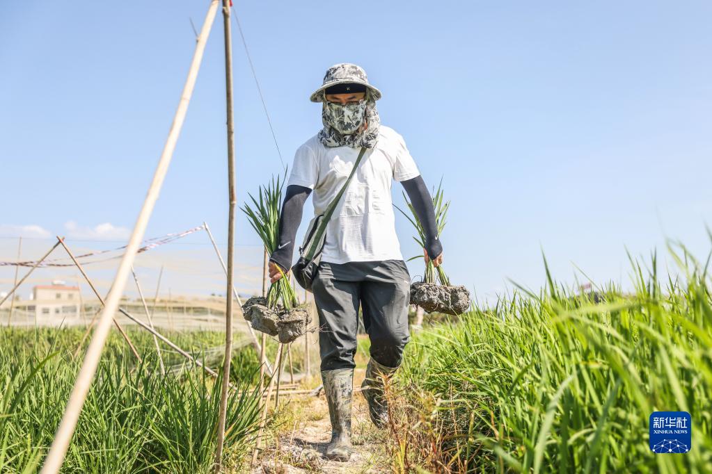 2月22日,青島海水稻研究發(fā)展中心的科研人員殷會(huì )德走在三亞的國家南繁科研育種基地里。