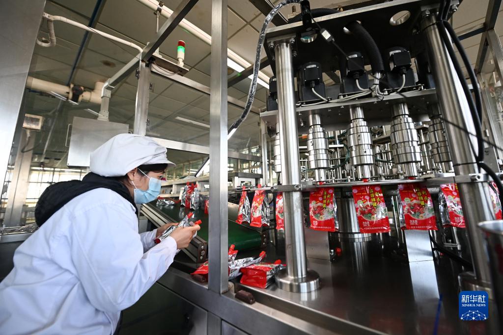 在天津市利民調料有限公司辣醬灌裝生產(chǎn)線(xiàn),工作人員在檢查產(chǎn)品包裝(2月20日攝)。