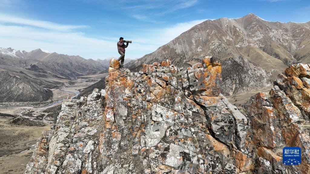 2月22日,更求曲朋在昂賽大峽谷里巡護途中拍照(無(wú)人機照片)。