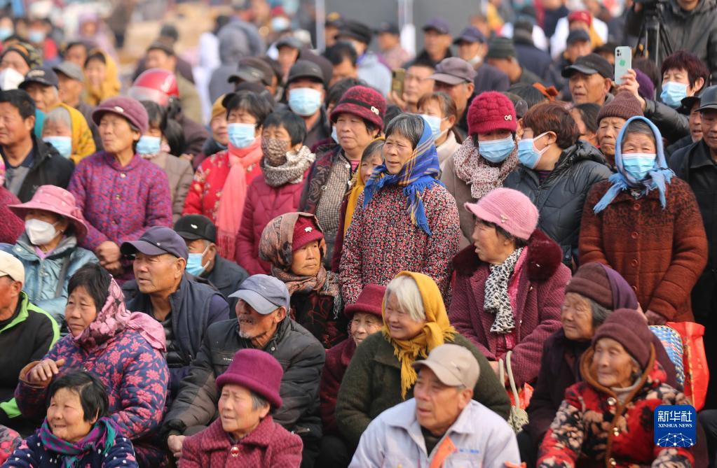 2月24日,在臨沂市沂南縣依汶鎮東依汶村,村民在觀(guān)看戲曲表演。