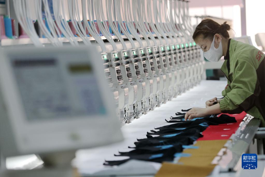 2月25日,工人在浙江省湖州市德清縣新安鎮一家紡織企業(yè)生產(chǎn)車(chē)間趕制刺繡訂單產(chǎn)品。