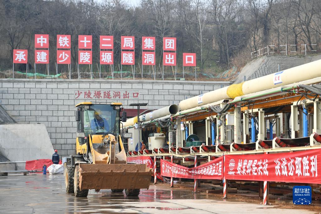 2月24日,中鐵十二局工人在位于西安市長(cháng)安區的陜西引漢濟渭工程少陵塬隧洞施工現場(chǎng)工作。