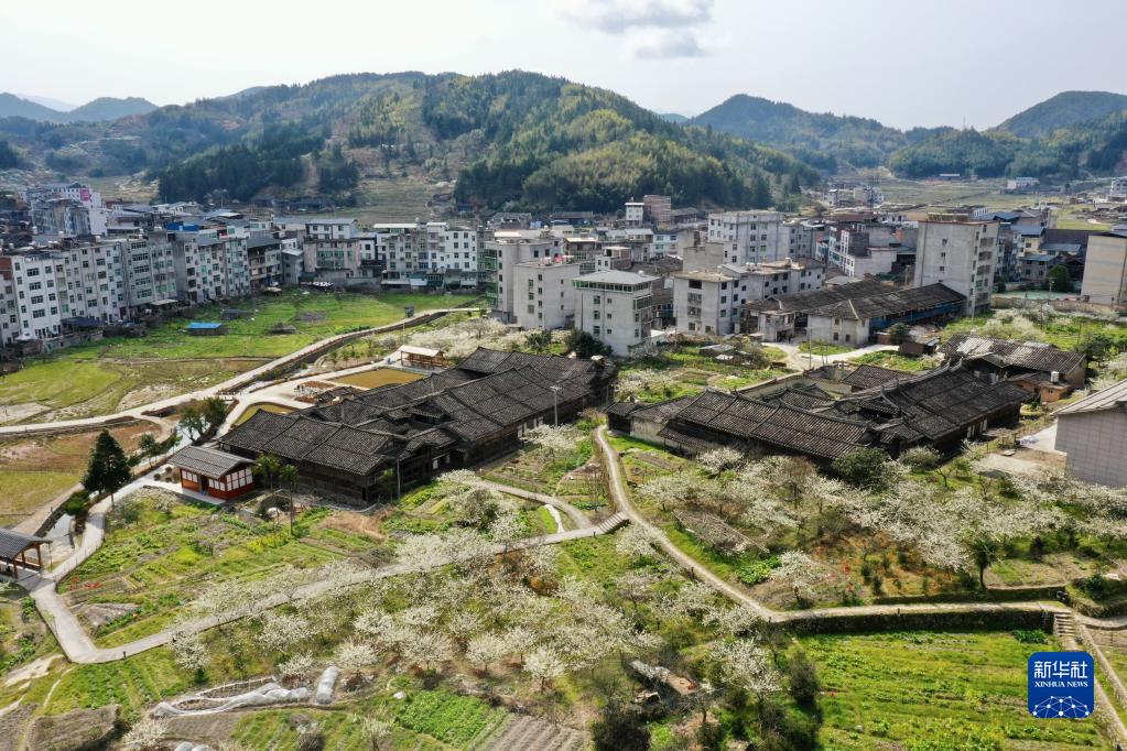 福州市永泰縣蓋洋鄉蓋洋村“三對厝”周?chē)罨ㄊ㈤_(kāi)(2月24日攝,無(wú)人機照片)。
