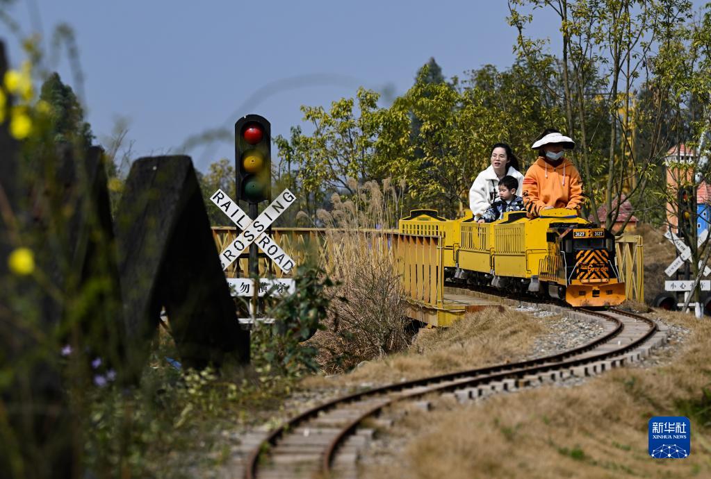2月25日,游客在四川眉山市仁壽縣中鐵火車(chē)來(lái)斯休閑體驗園乘坐小火車(chē)游玩。