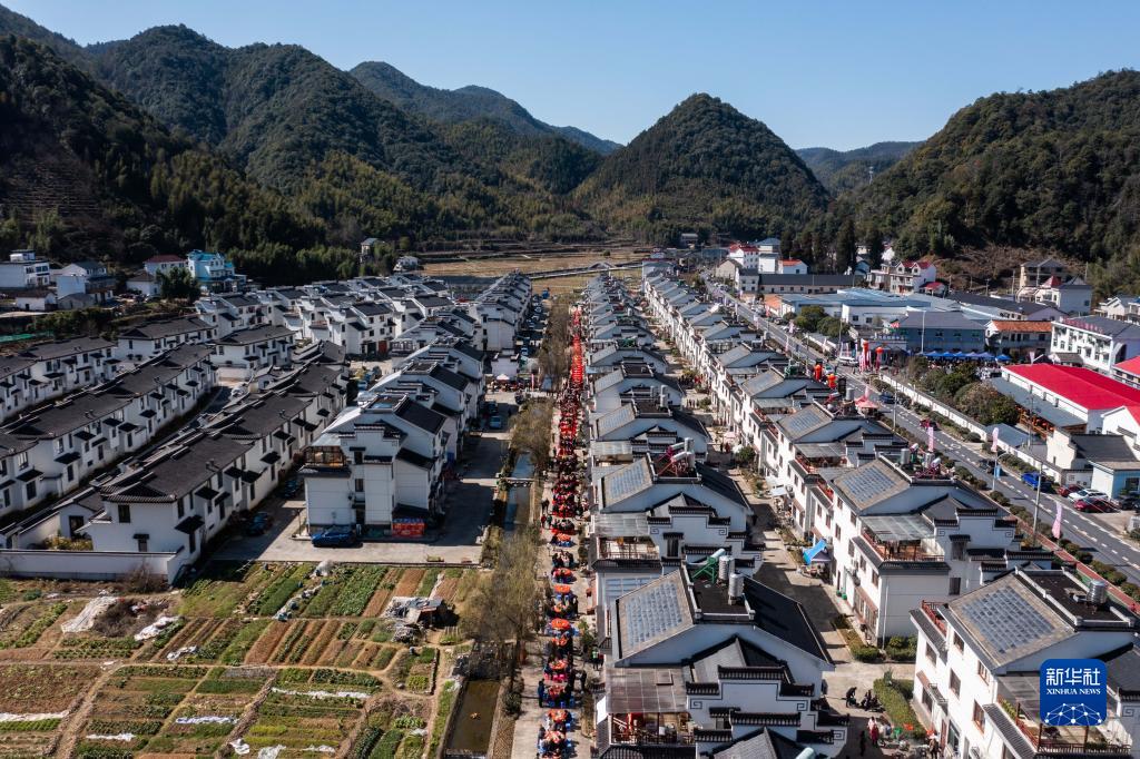 2月26日空中俯瞰蓮花鎮戴家新村的百家宴(無(wú)人機照片)。