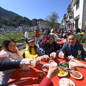 當日,上千名游客來(lái)到浙江省建德市蓮花鎮戴家新村民宿一條街,參加鄉村特色百家宴,感受新農村“舌尖上的幸?!?。本次鄉村百家宴也標志著(zhù)2023建德市蓮花鎮鄉村民俗旅游文化節正式開(kāi)啟。