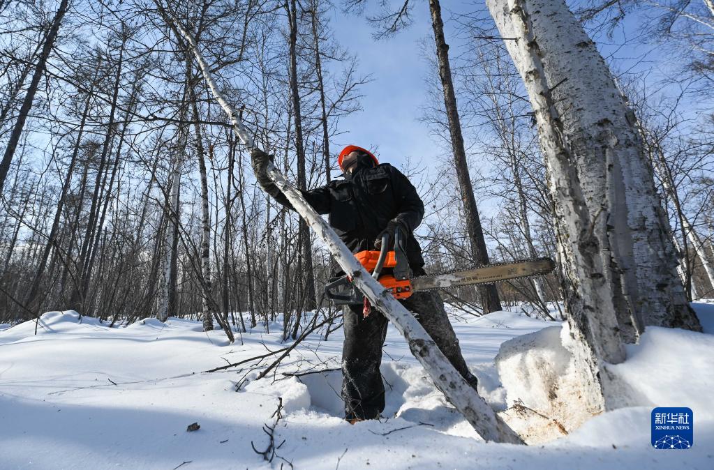 2月23日,烏龍岱林場(chǎng)402工隊職工溫樹(shù)昌在林區作業(yè)。