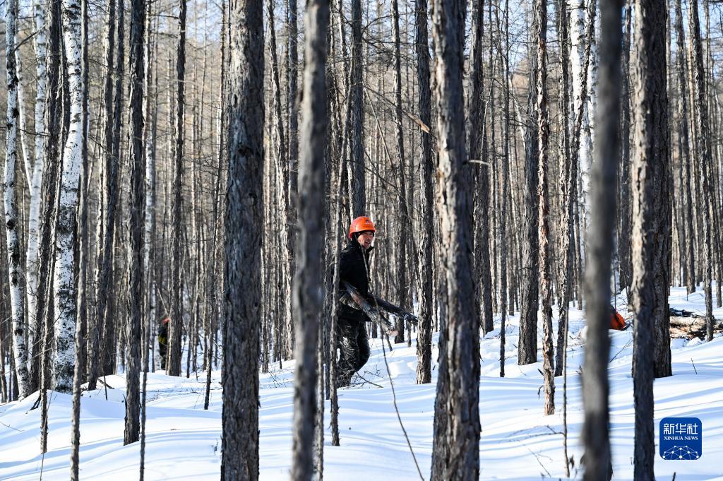 2月23日,烏龍岱林場(chǎng)402工隊職工溫樹(shù)昌在林區作業(yè)。