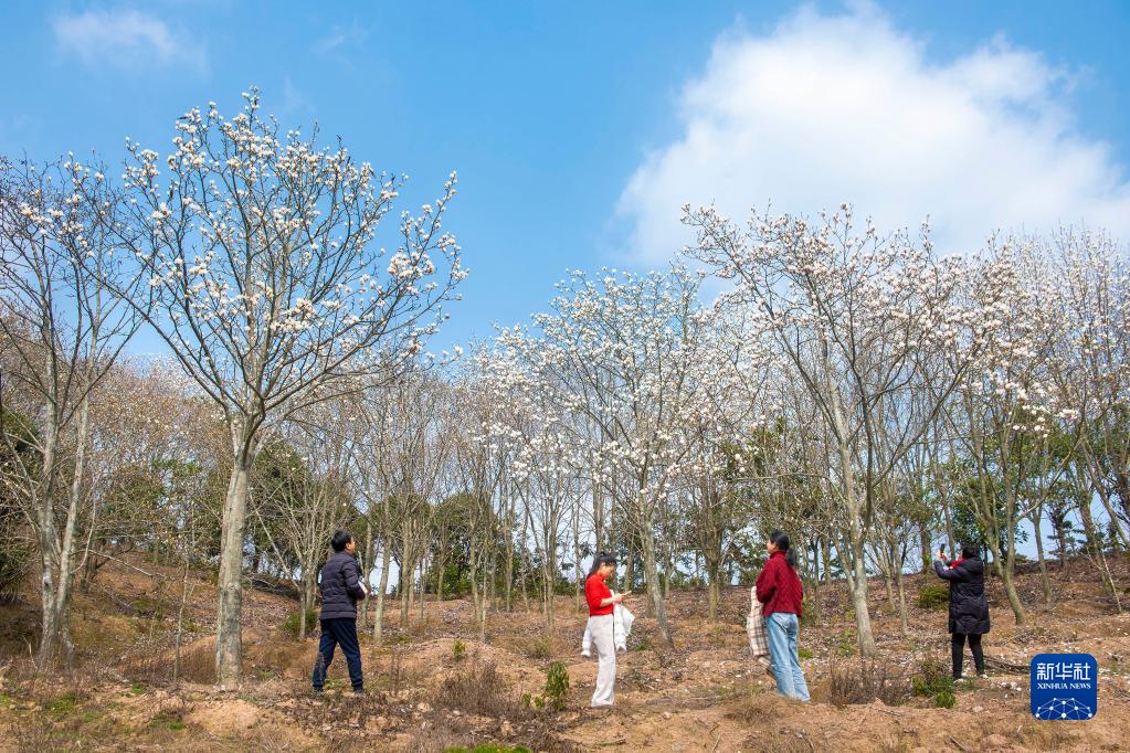 2月25日,游客在浙江省寧波市奉化區錦屏街道長(cháng)嶺村游玩賞花。