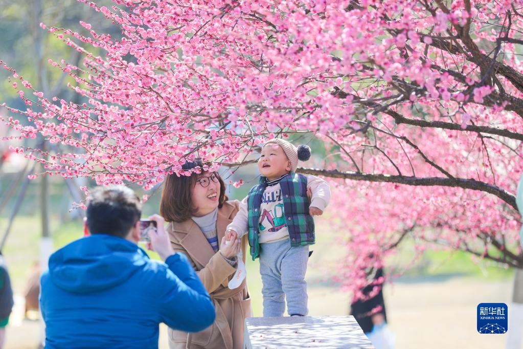 2月26日,人們在浙江省湖州市德清縣春暉公園游玩賞花。