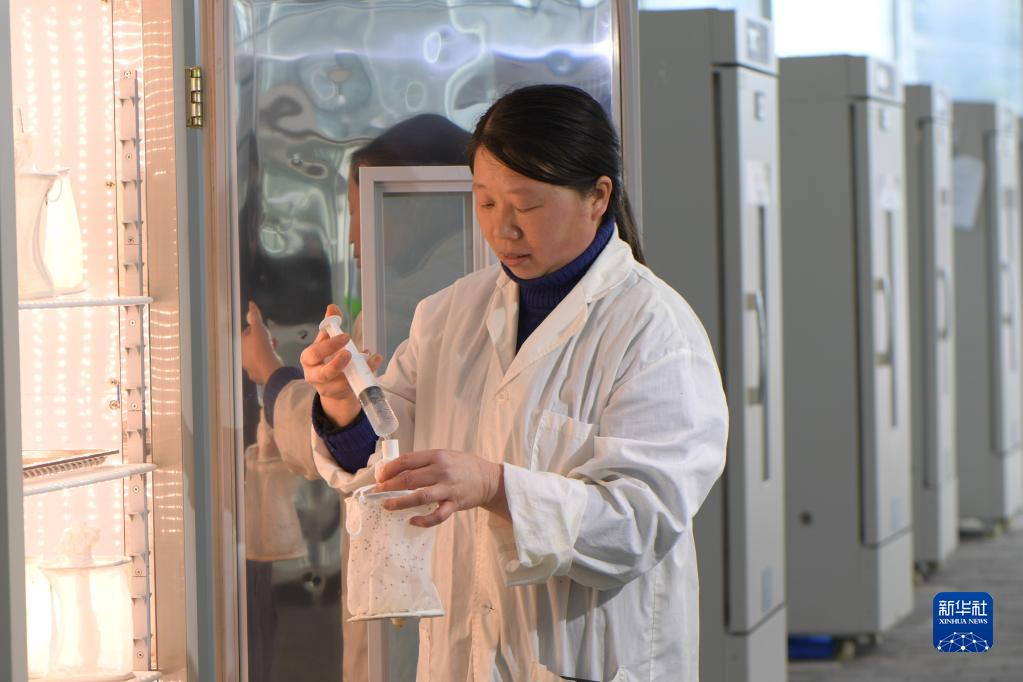2月26日,貴州省鳳岡縣天敵昆蟲(chóng)繁育中心工作人員給幼齡躅蝽喂蜂蜜水。