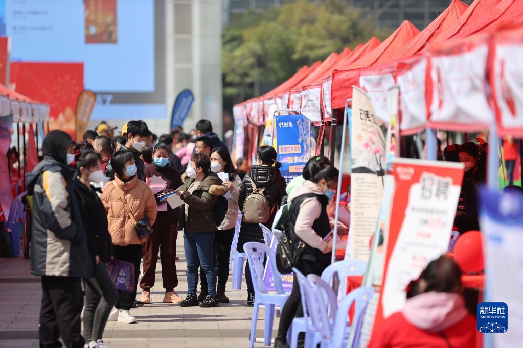 當日,一場(chǎng)春季大型招聘會(huì )在福建廈門(mén)五一文化廣場(chǎng)舉行,現場(chǎng)百余家用人單位提供崗位需求,吸引求職者前來(lái)應聘。