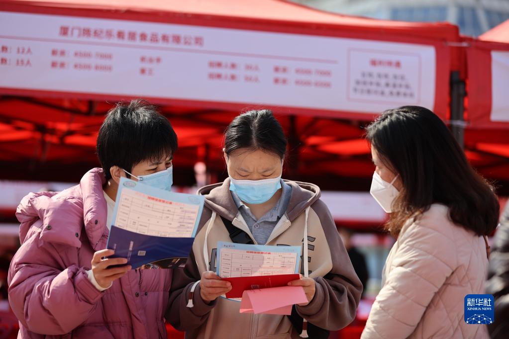 當日,一場(chǎng)春季大型招聘會(huì )在福建廈門(mén)五一文化廣場(chǎng)舉行,現場(chǎng)百余家用人單位提供崗位需求,吸引求職者前來(lái)應聘。