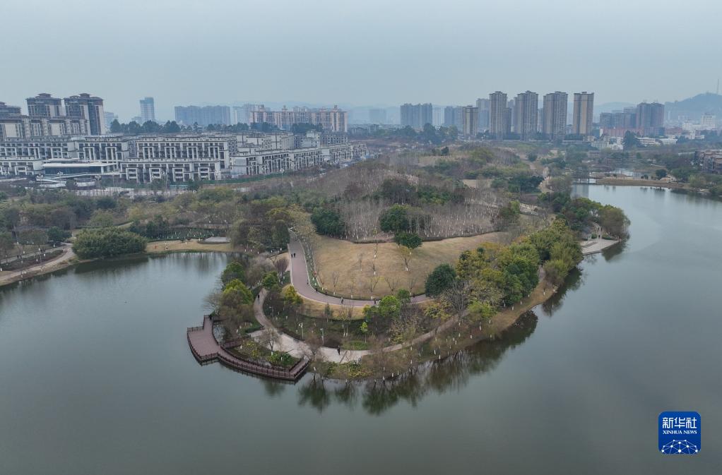 這是2月26日在眉山市仁壽縣拍攝的城市濕地公園(無(wú)人機照片)。