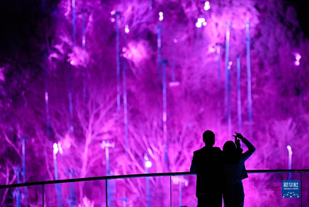 當地群眾在眉山市仁壽縣打造的“兩山一河”亮化工程觀(guān)光游覽(2月25日攝)。