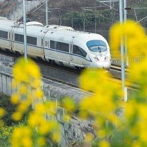 春暖花開(kāi)時(shí)節,油菜花陸續盛開(kāi),列車(chē)穿行其間,美不勝收。