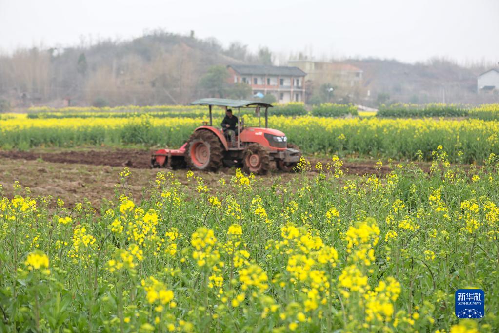 2月28日,湖南省衡陽(yáng)縣峴山鎮更榮村農民駕駛農機在田里翻耕土地。