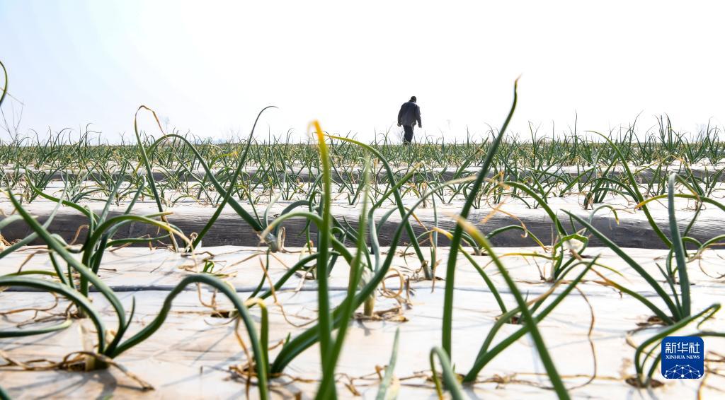 2月27日,河南省濟源市坡頭鎮佛澗村農民在洋蔥大田里忙碌。