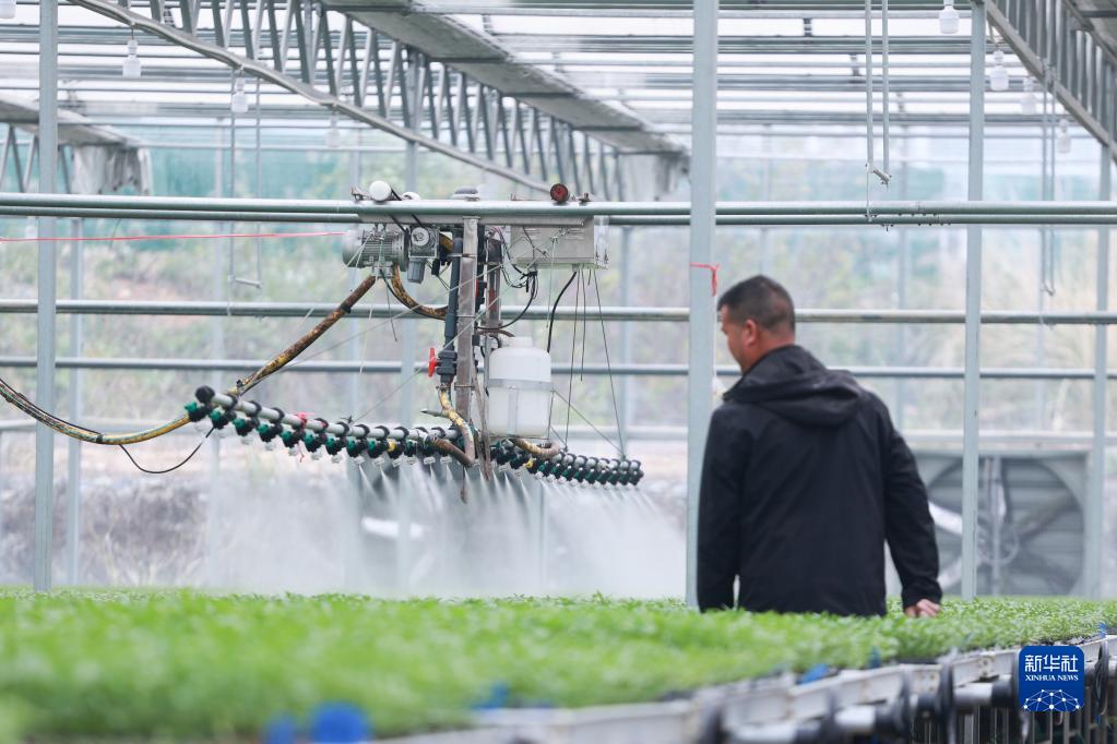 在貴州省榕江縣車(chē)江壩區智慧育苗中心內,當地農民運用水稻缽體育秧機、水肥一體自動(dòng)噴淋機、多功能育苗大棚等機械化、智能化設備進(jìn)行育秧育苗生產(chǎn),有效提高了勞動(dòng)效率和種苗質(zhì)量,助力春耕生產(chǎn)。
