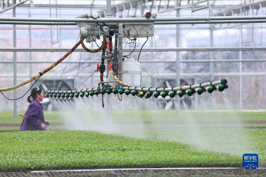 在貴州省榕江縣車(chē)江壩區智慧育苗中心內,當地農民運用水稻缽體育秧機、水肥一體自動(dòng)噴淋機、多功能育苗大棚等機械化、智能化設備進(jìn)行育秧育苗生產(chǎn),有效提高了勞動(dòng)效率和種苗質(zhì)量,助力春耕生產(chǎn)。