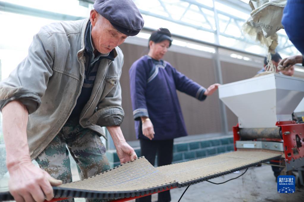 在貴州省榕江縣車(chē)江壩區智慧育苗中心內,當地農民運用水稻缽體育秧機、水肥一體自動(dòng)噴淋機、多功能育苗大棚等機械化、智能化設備進(jìn)行育秧育苗生產(chǎn),有效提高了勞動(dòng)效率和種苗質(zhì)量,助力春耕生產(chǎn)。