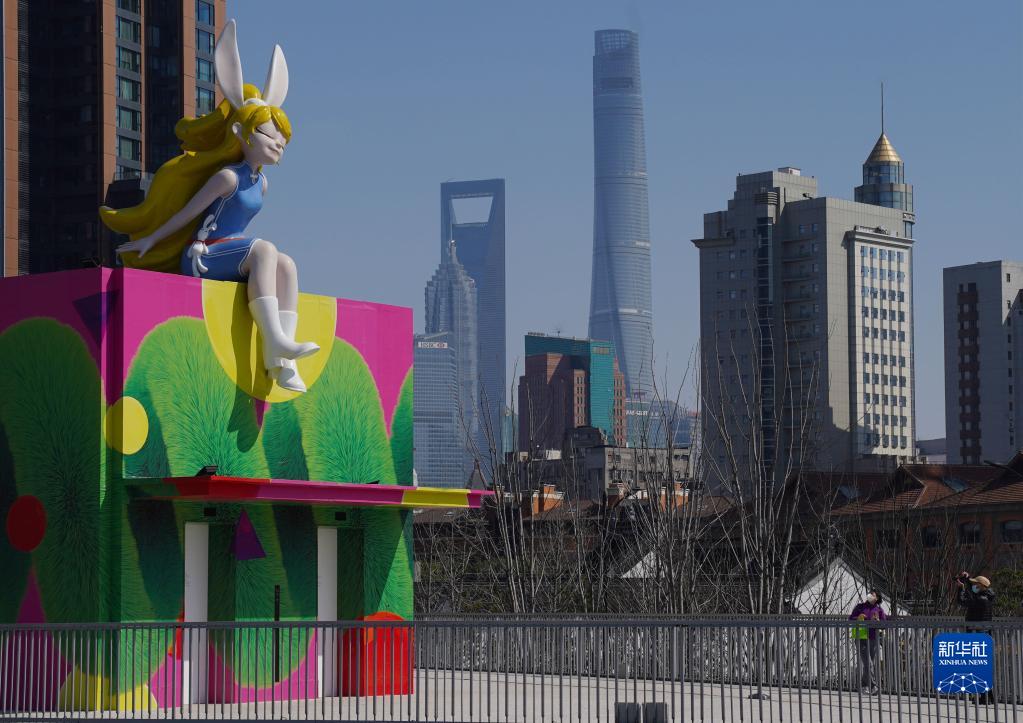 2月20日,人們在蘇河灣萬(wàn)象天地的大型藝術(shù)裝置前拍照。