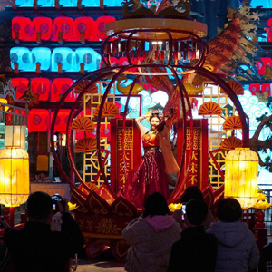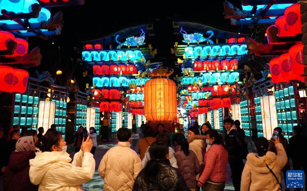 2月27日晚,游客在位于山東省東平縣的大宋不夜城游覽。