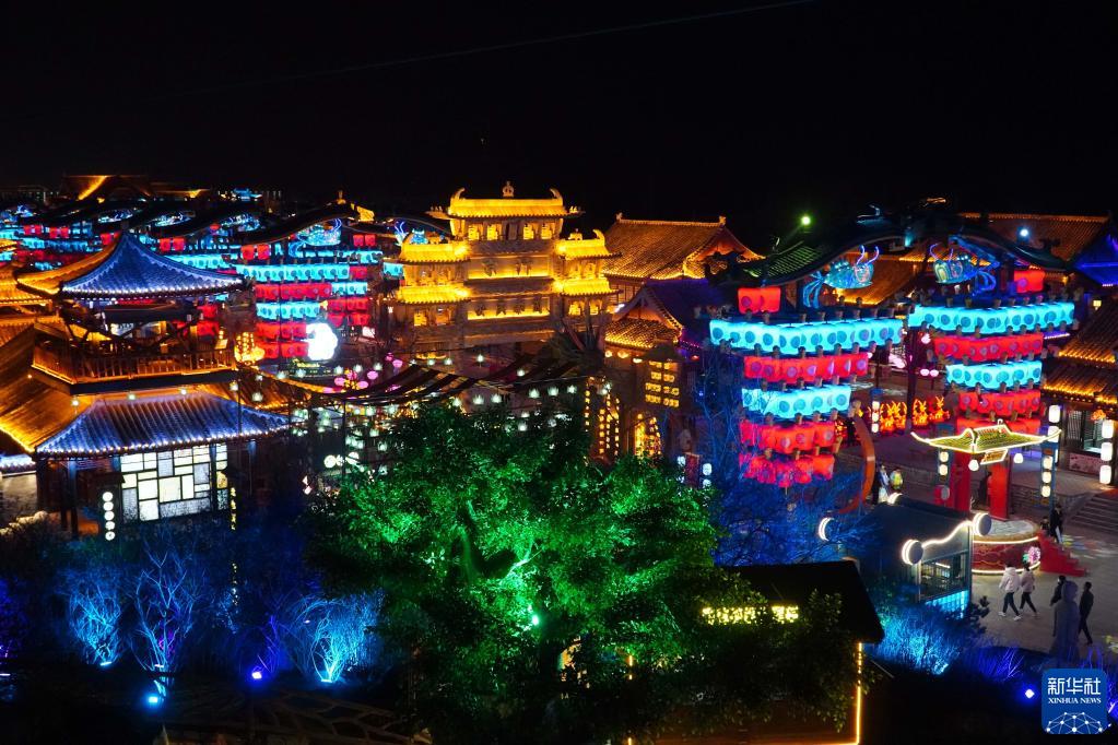 2月27日拍攝的位于山東省東平縣的大宋不夜城夜景。